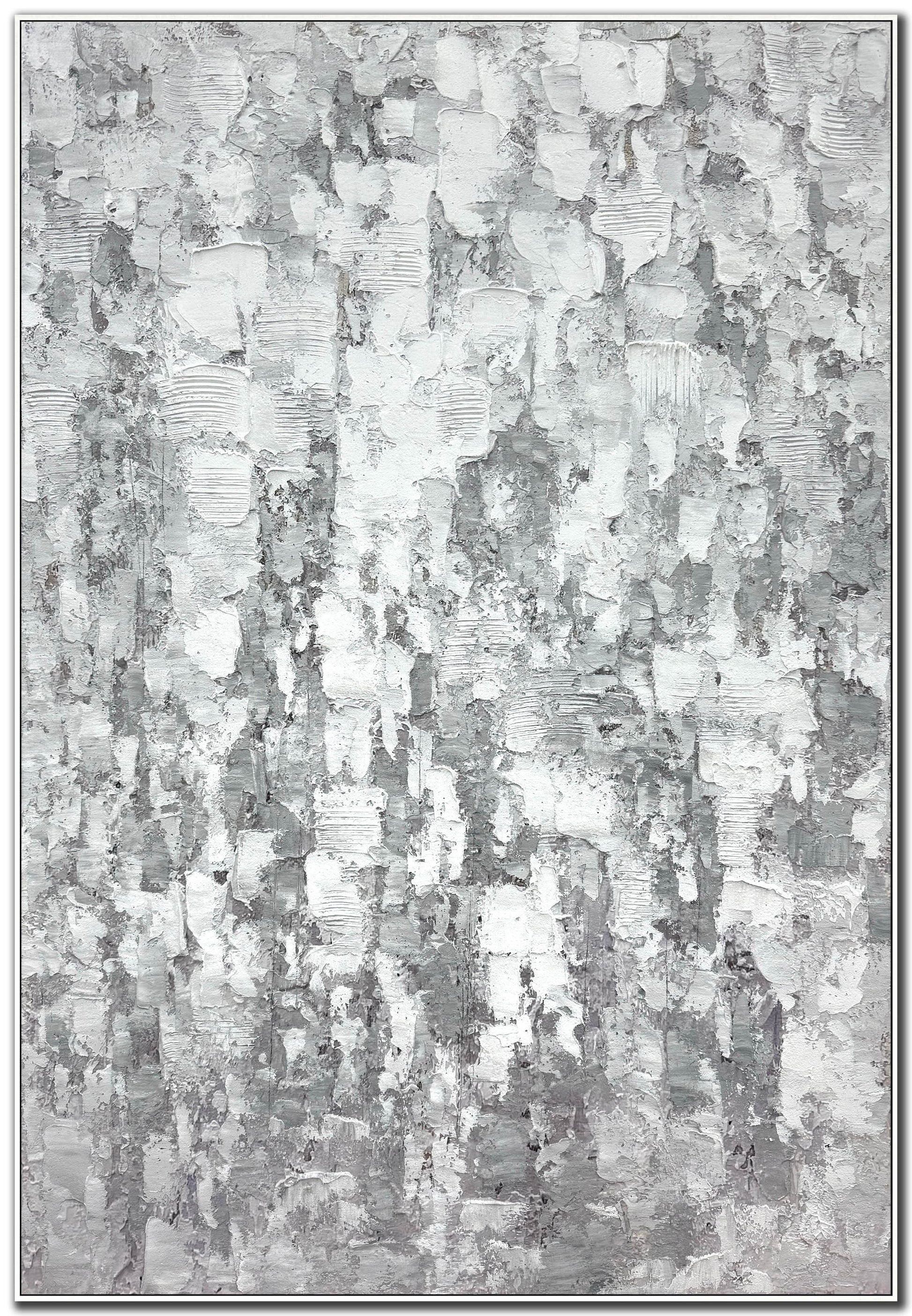 Heavily textured and hand-painted canvas art in a White Floating Frame
