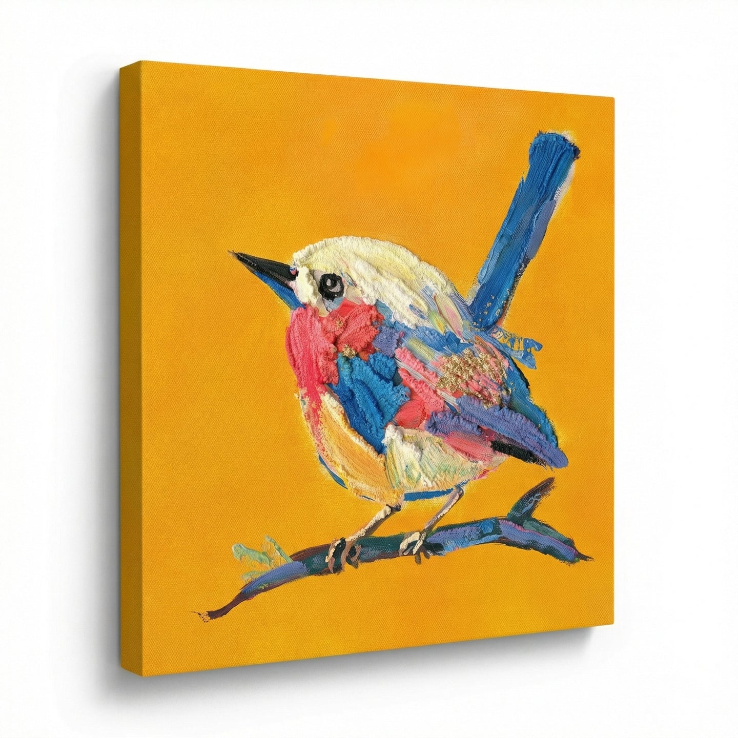 Hand embellished canvas art with raised paint texture, gallery wrapped around pine stretcher bars