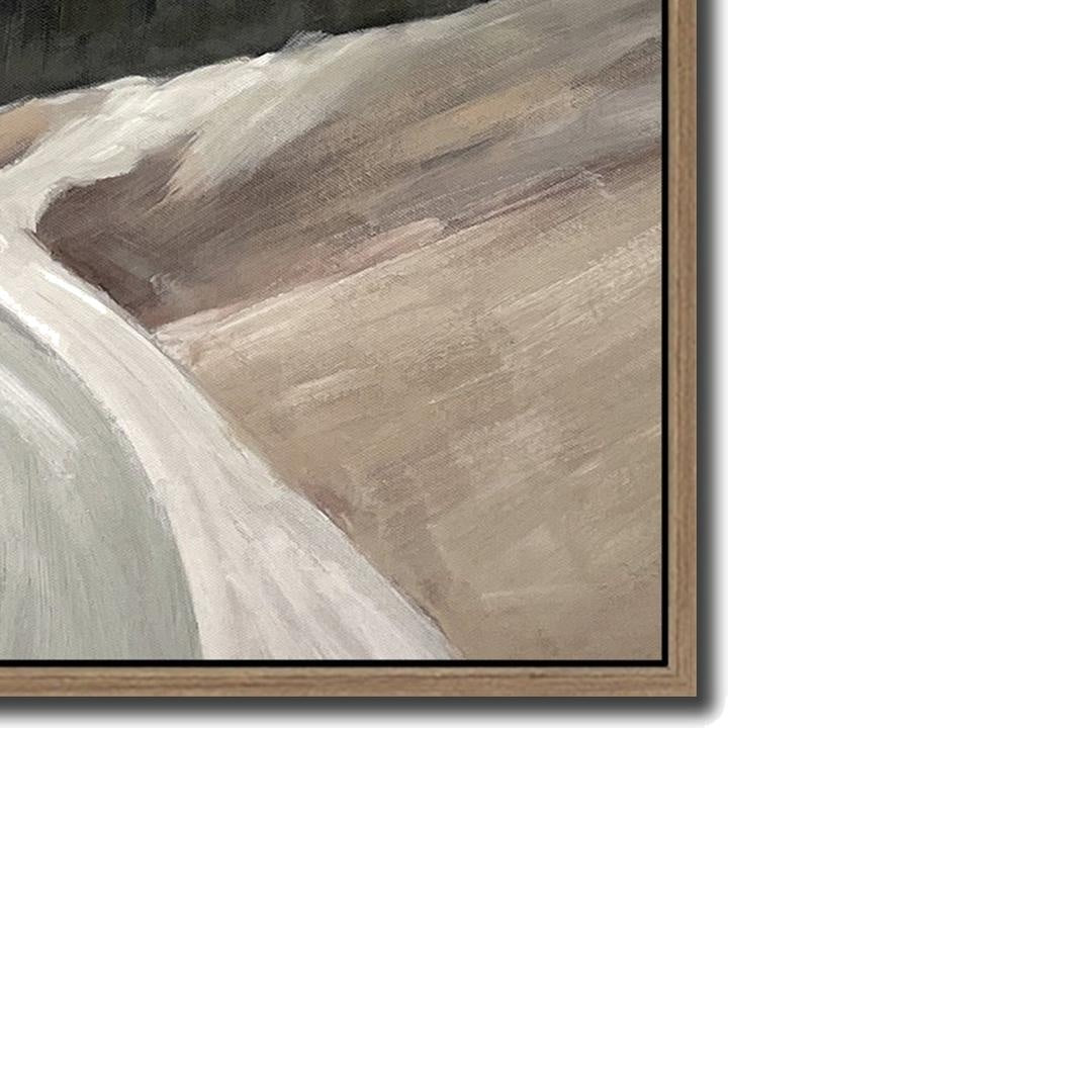 Hand embellished and heavily textured canvas art in an oak colored floating frame