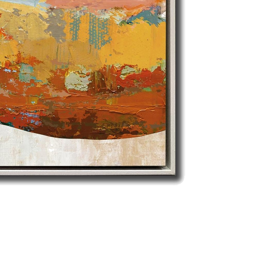 Hand embellished canvas art in a white floating frame