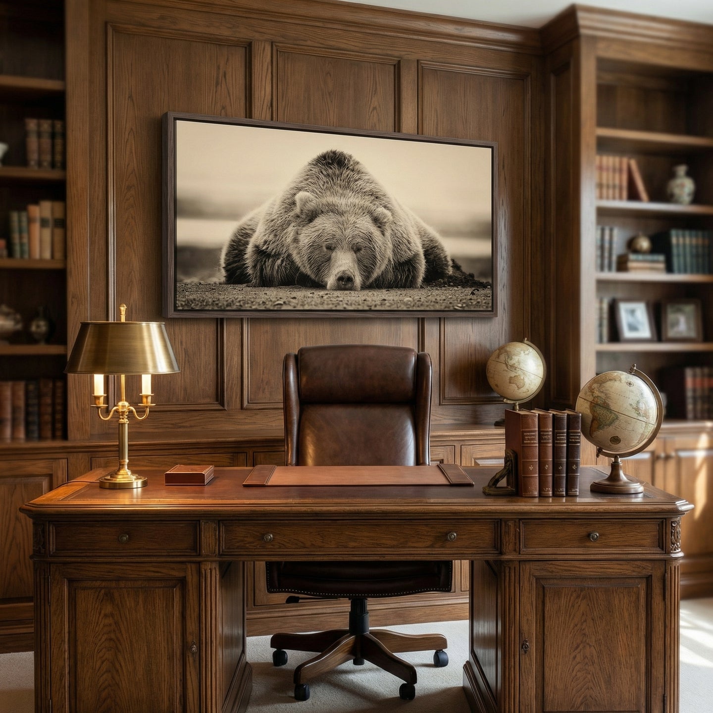 Hand embellished canvas art in a barnwood floating frame