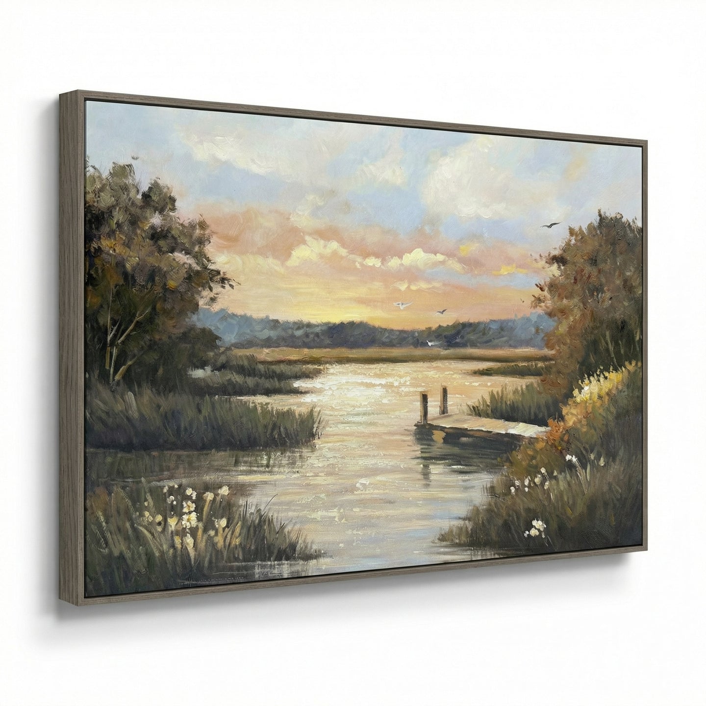 Hand embellished canvas art in a Chocolate Floating Frame