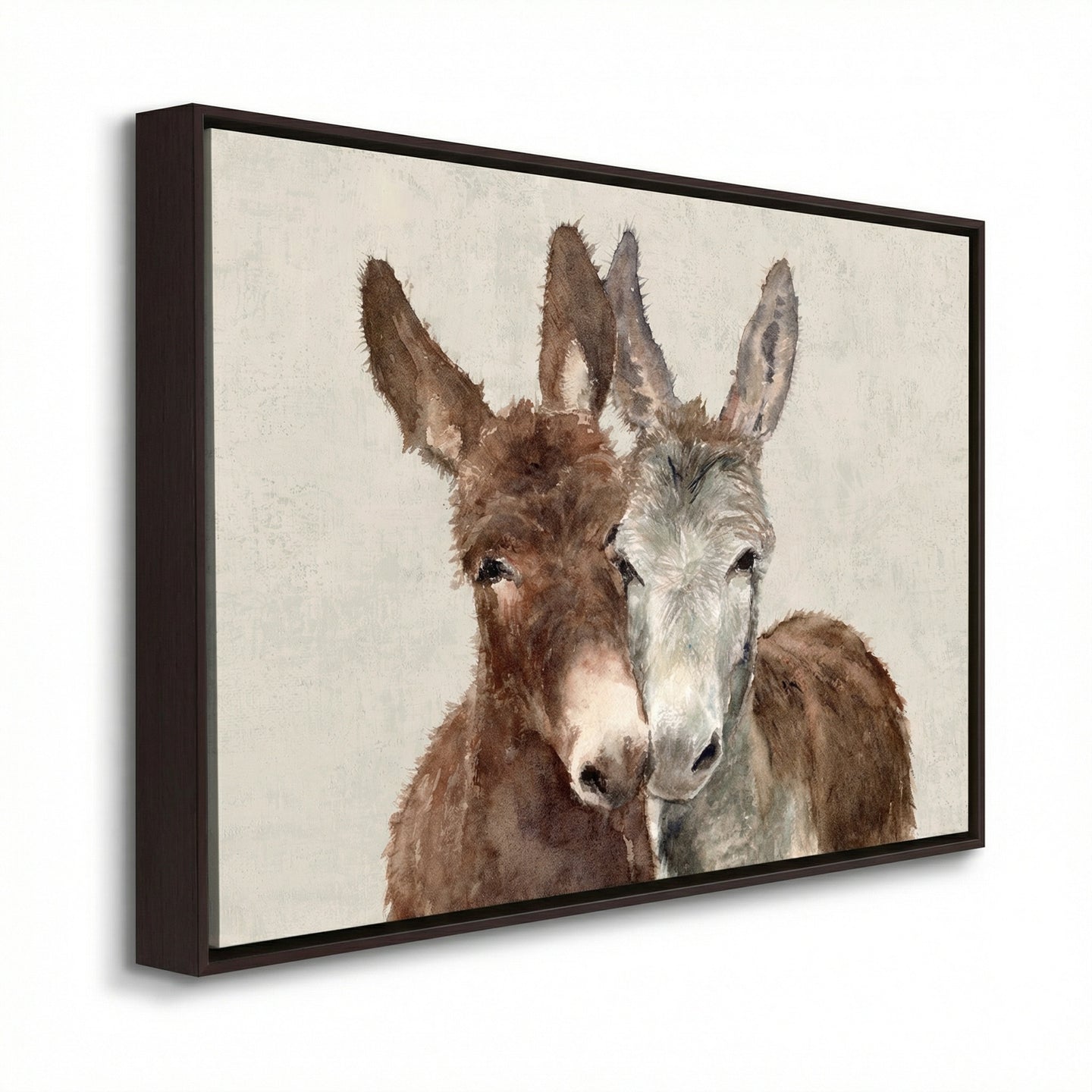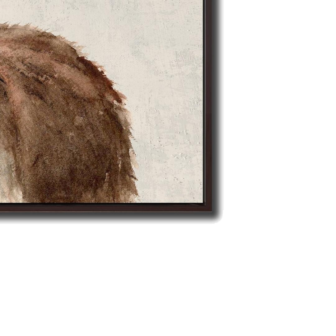 Hand embellished canvas art in a dark brown wood color floating frame