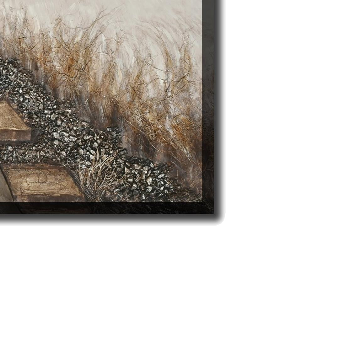 3D Oil painting on gallery wrapped canvas with actual metal and stone embellishments, heavily textured and gallery wrapped around pine stretcher bars