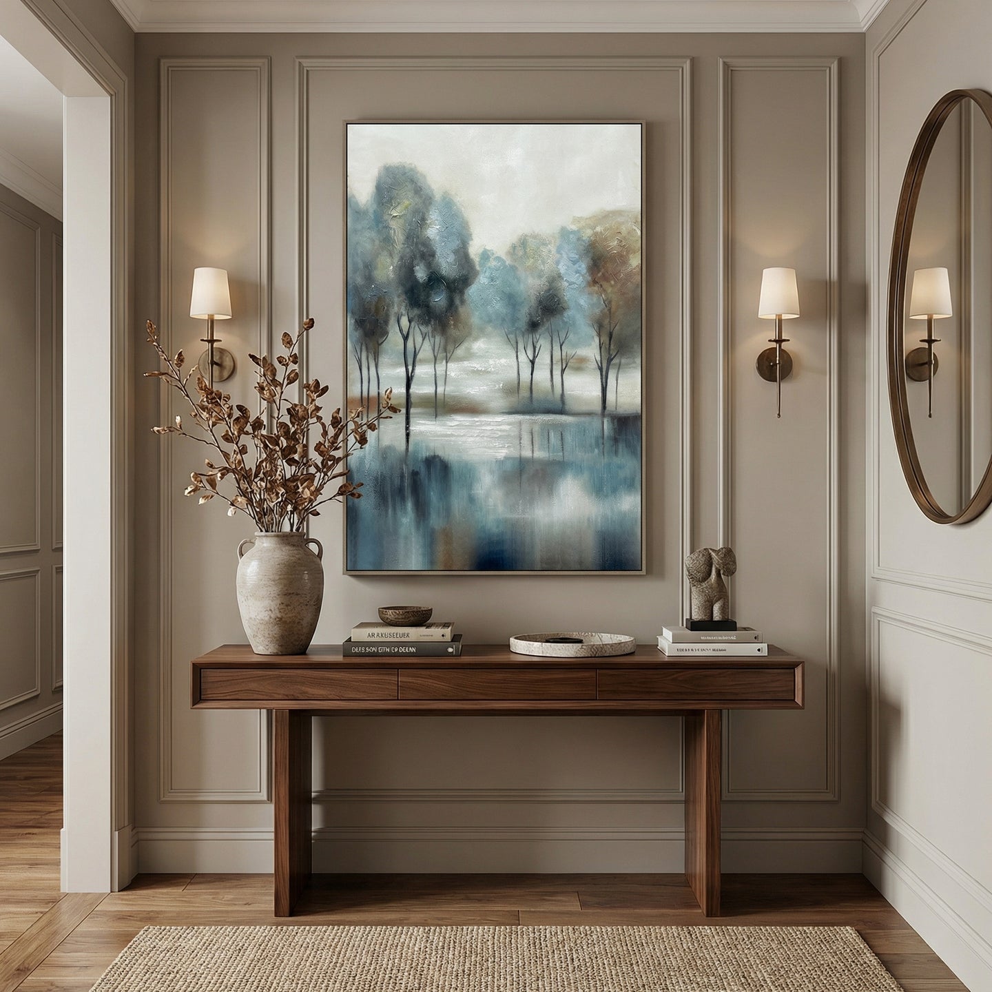 Hand embellished and heavily textured canvas art in a oak floating frame