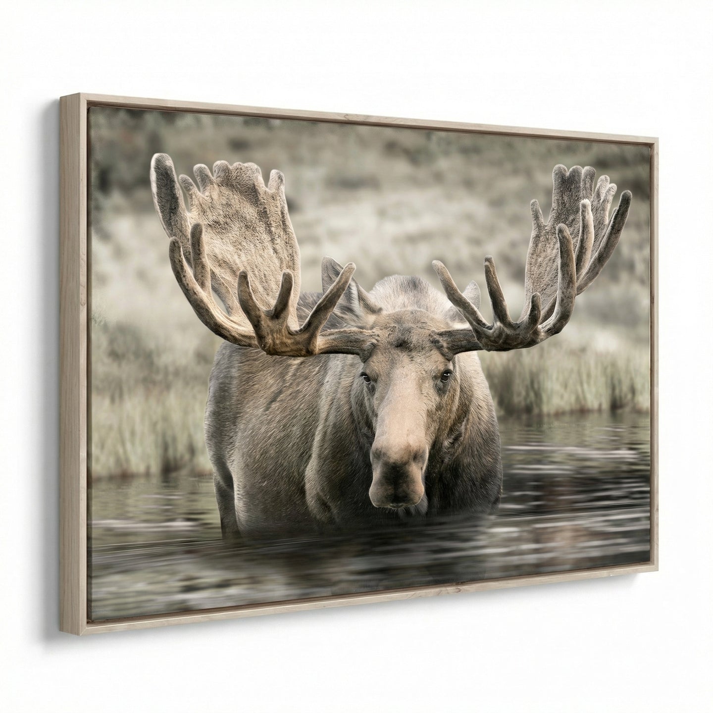 Hand embellished canvas art in a barnwood floating frame