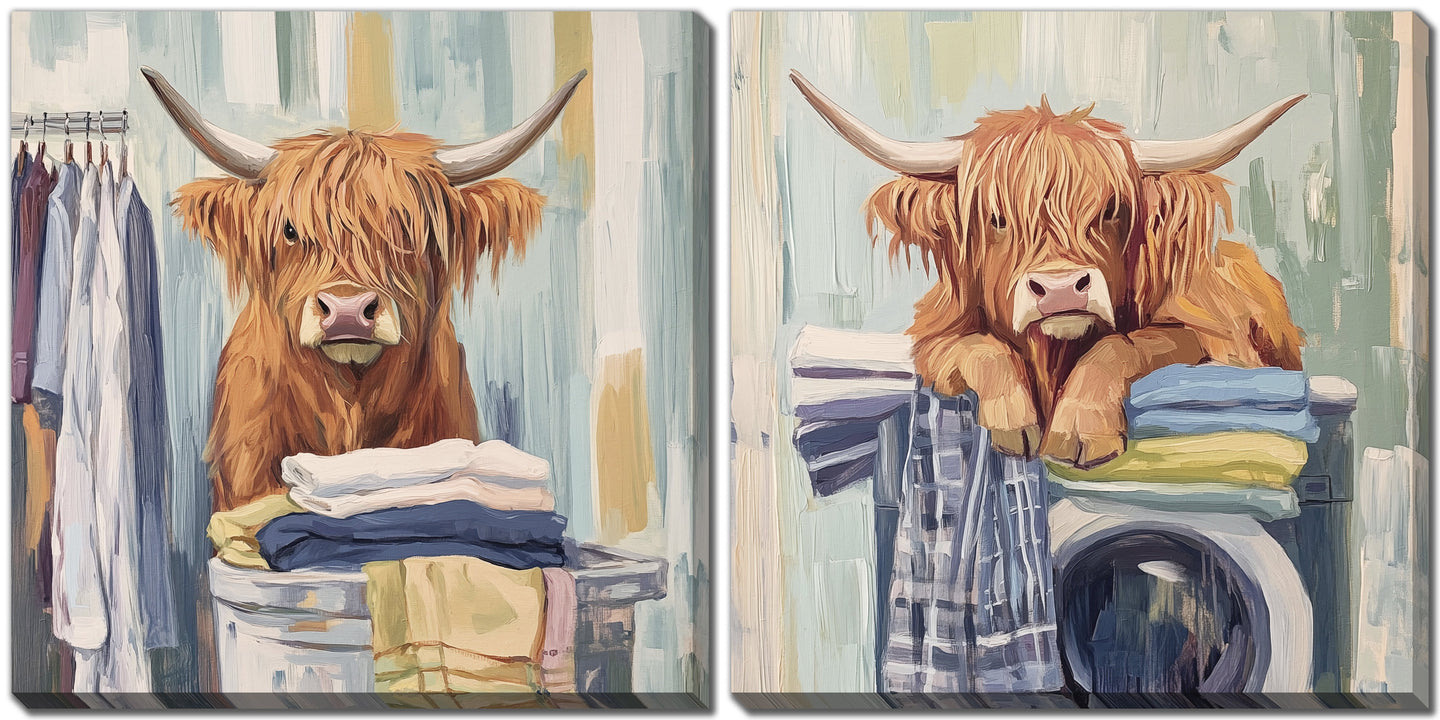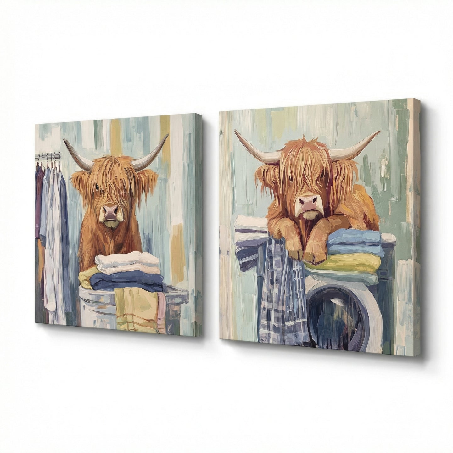 Set of 2, hand embellished canvas art gallery-wrapped on pine stretcher bar frames presented in an open-faced box