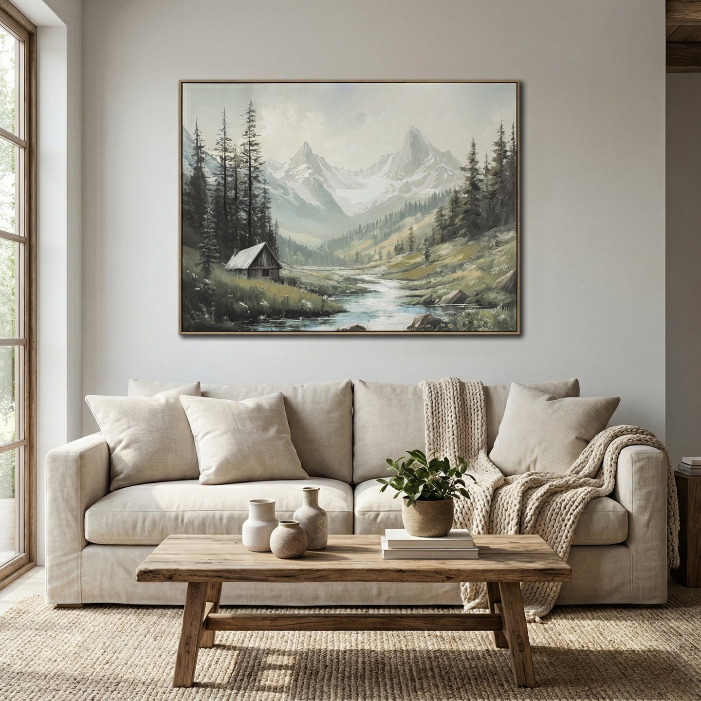 Hand embellished canvas art in a Barnwood Floating Frame
