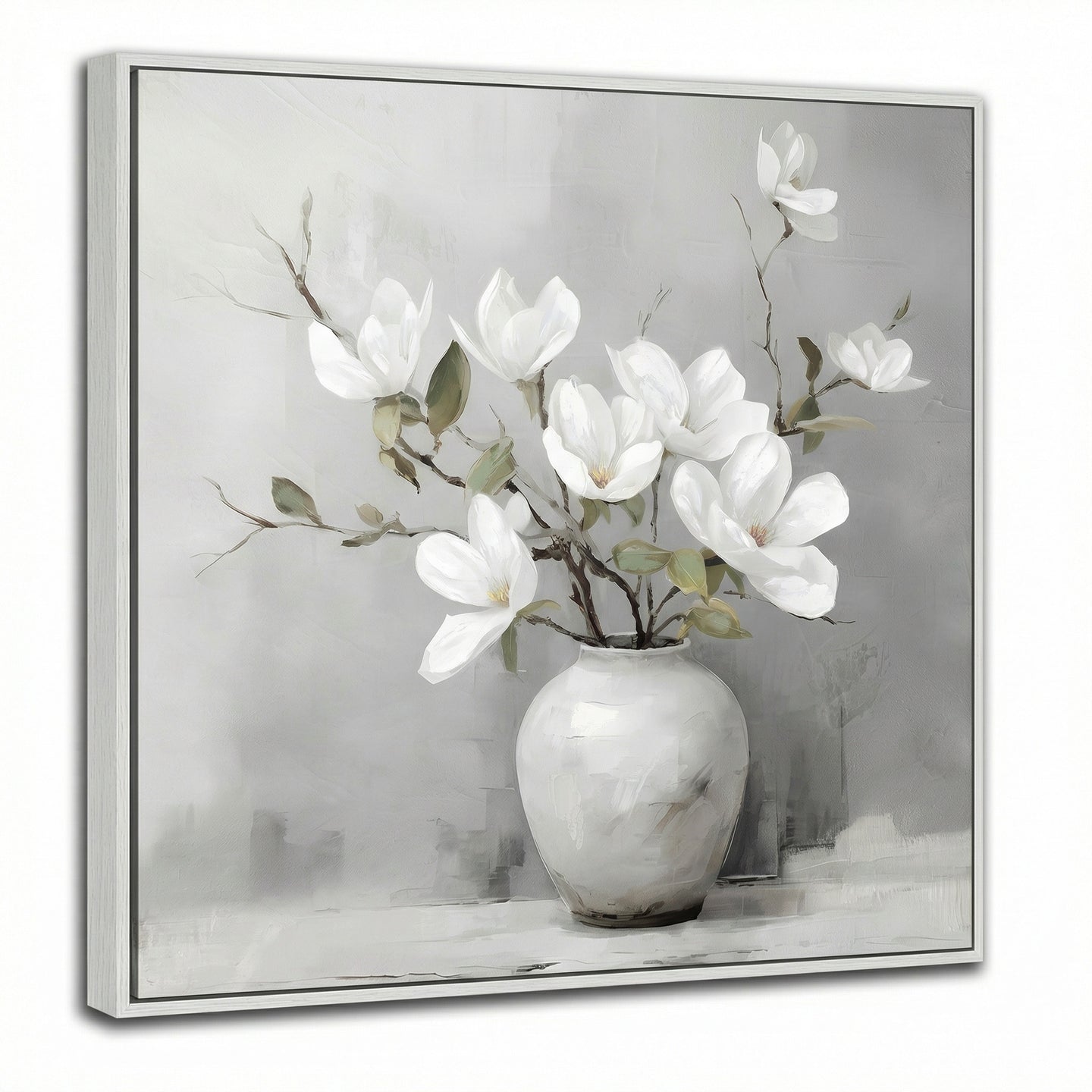 Hand embellished canvas art in a silver floating frame