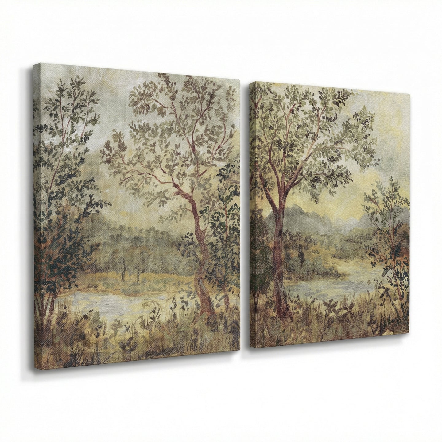Set of 2, hand embellished canvas art gallery-wrapped on pine stretcher bar frames presented in an open-faced box
