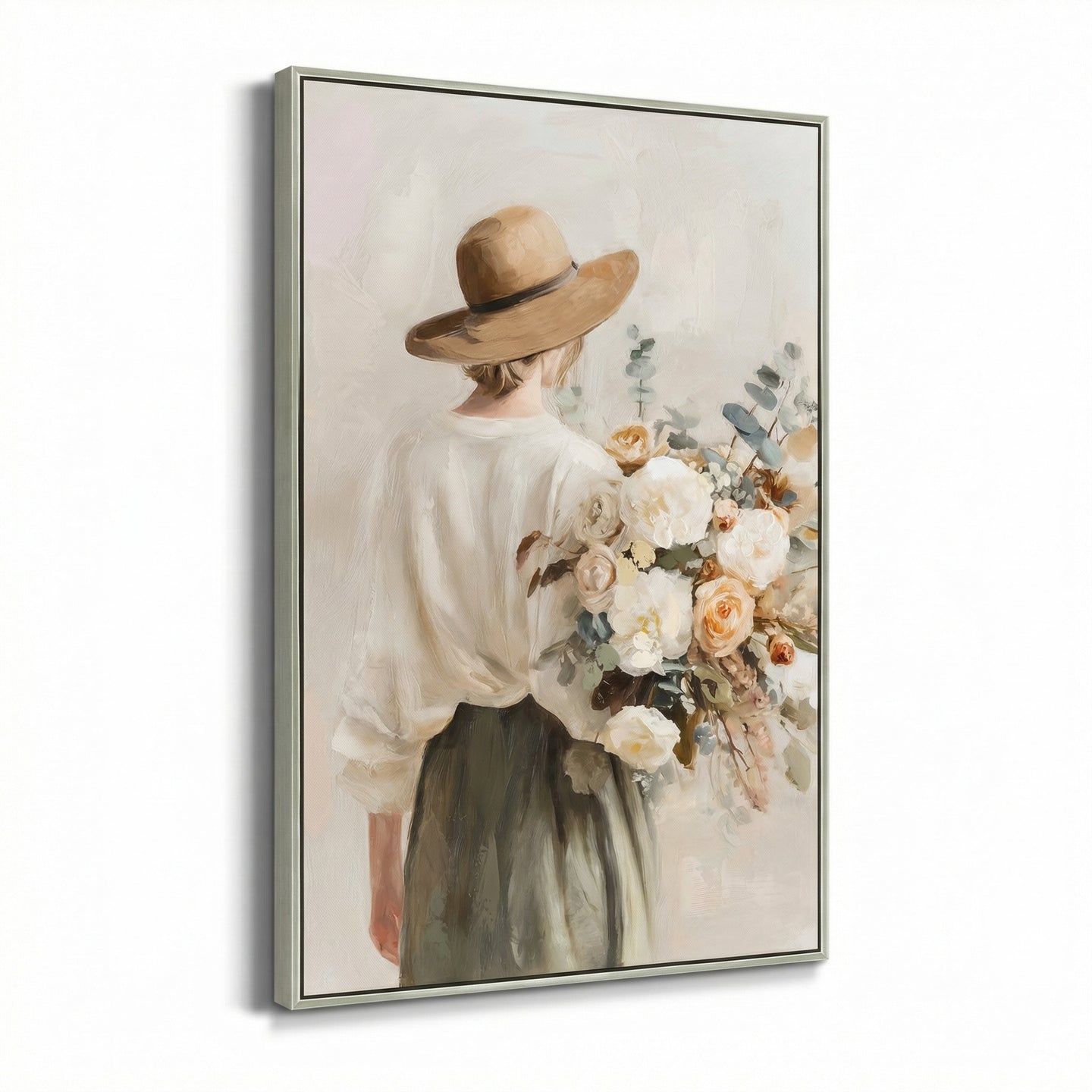 Hand embellished canvas art in a Champagne Floating Frame