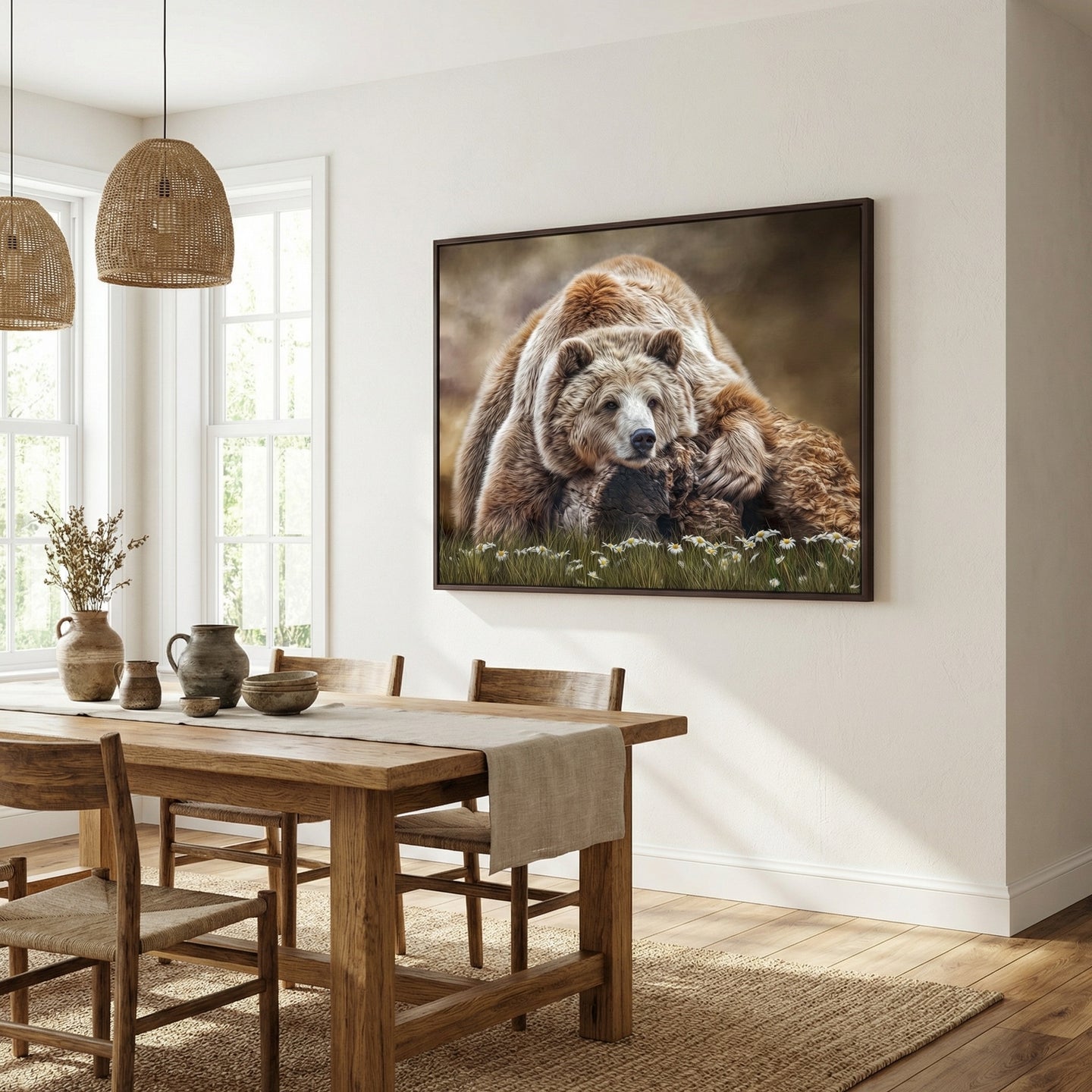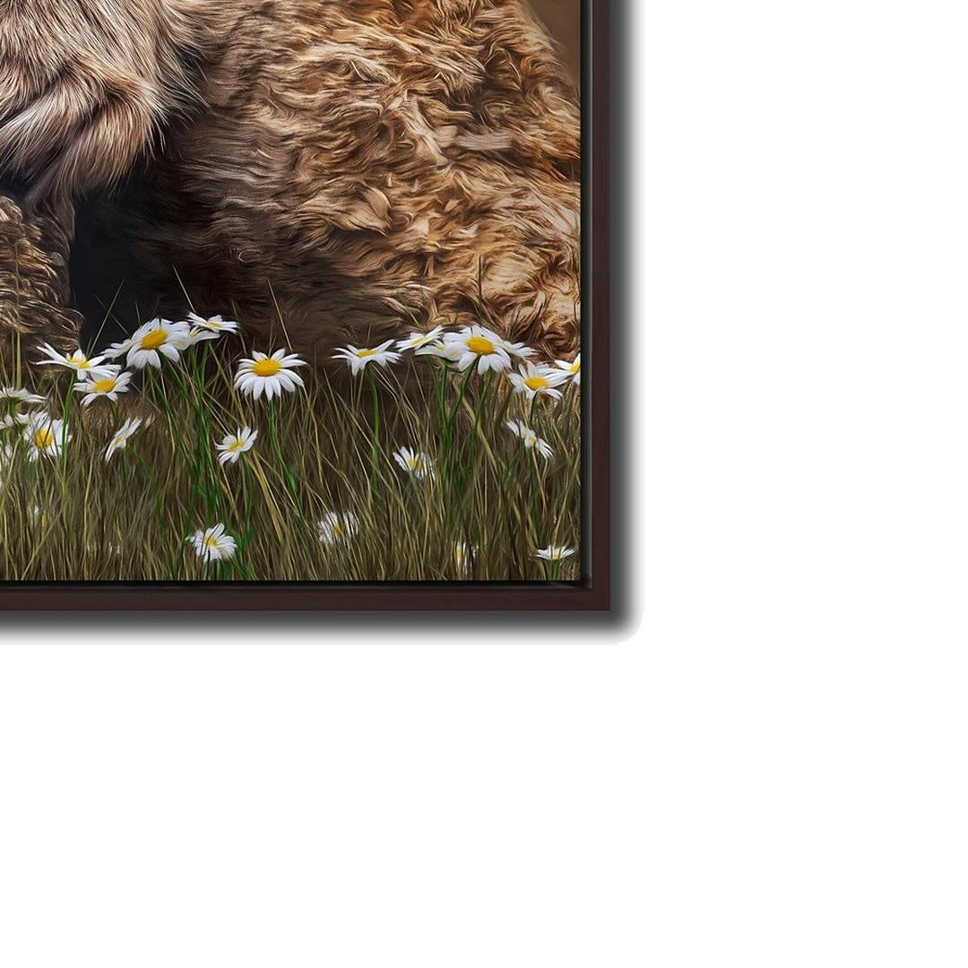 Hand embellished canvas art in a Brown Floating Frame